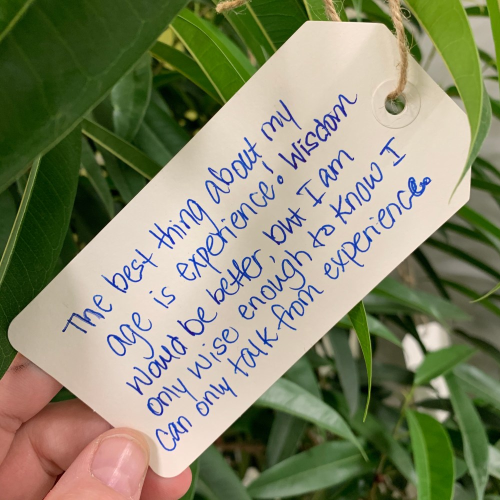 We will work with your organization to install interactive art installation that engages visitors, residents, and staff. Our goal is to create a memorable experience that captivates and inspires participants to think about age and aging in creative and positive ways. One of our creations is the (Aging Is) Living Tree, which asks observers to write responses to prompts and hang them on the tree. More details HERE.